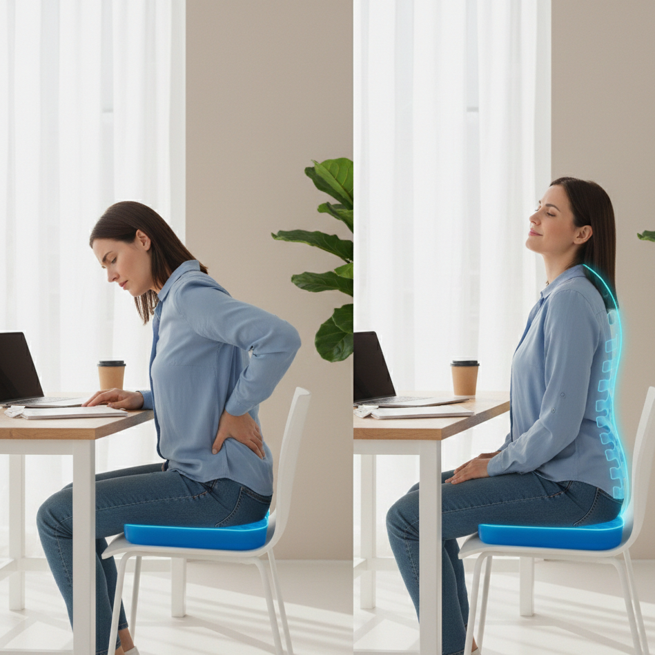 Este cojín está diseñado para reducir el dolor en la espalda baja, cadera y coxis al estar sentado por largos períodos. Ayuda a mejorar la postura y a distribuir el peso de forma uniforme, disminuyendo la presión en los puntos sensibles.